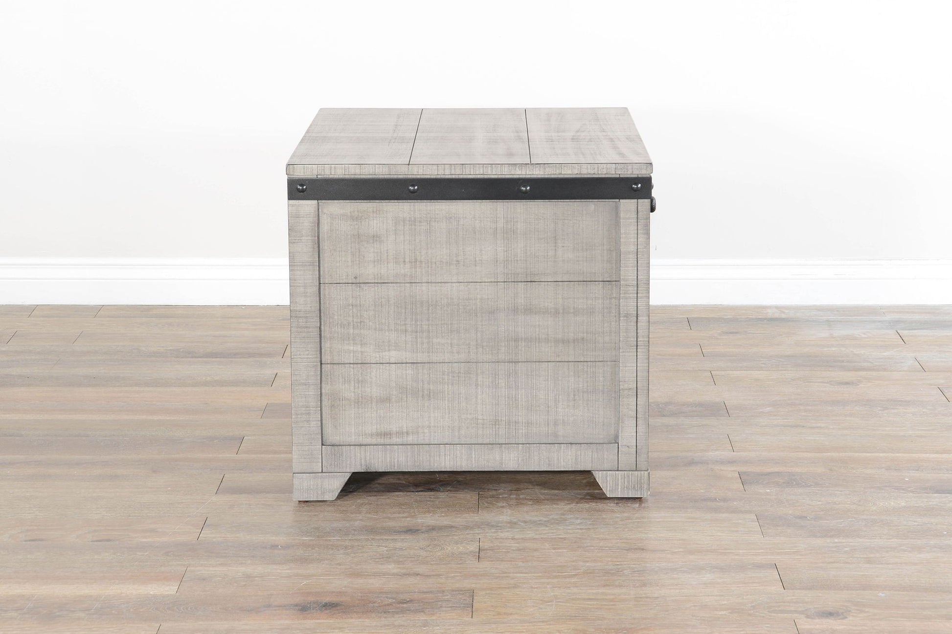 Introducing the Alpine Storage Table, a versatile and stylish addition to your living space that seamlessly combines form and function. Crafted with care, this table features distressed mahogany with slated panel sides, exuding a rustic charm that adds character to any room. The inclusion of metal details provides an industrial touch, elevating the overall aesthetic with a hint of modern edge.