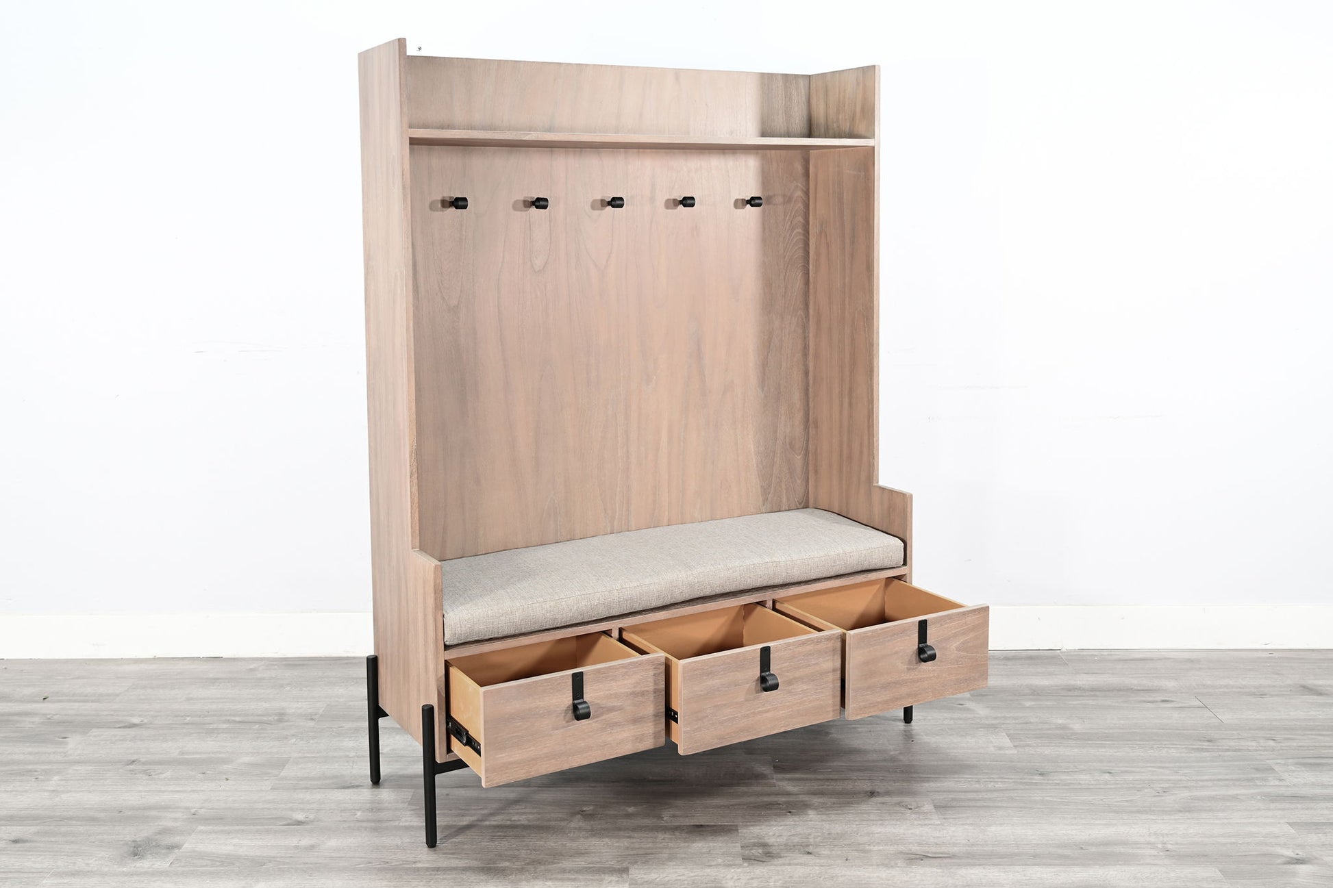 This hall tree comes fully assembled, saving you time and effort in setting it up. With three spacious drawers for convenient storage and five hooks for hanging coats, scarves, or bags, the Alyssa Hall Tree combines functionality with a sleek design. The added shelf provides extra space for displaying decor or stashing everyday essentials.
