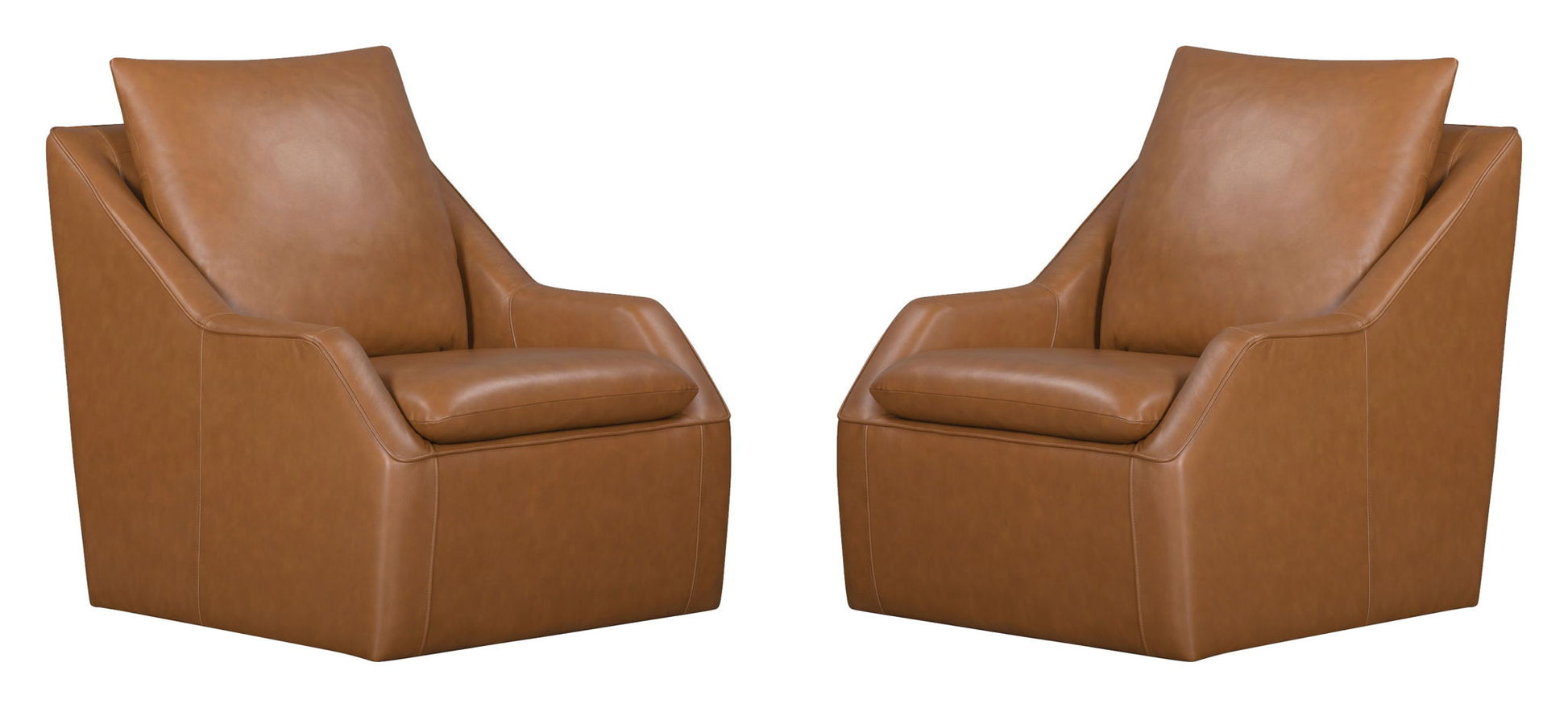 The Asher accent chair features a 360-degree swivel for ease of motion and a modern low-profile design. The comfortable, attached pillowtop seat has subtle welting and stitching, and the back cushion is removable, making cleaning a breeze. The Asher accent chair adds comfort and style to any room and is available in various colors in 100% top-grain leather.