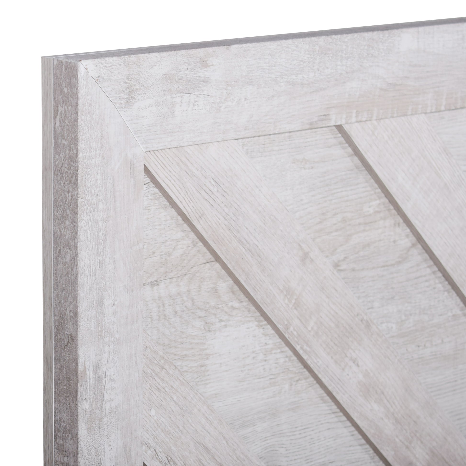 Meet the Biscayne Bed, meticulously crafted with durable manufactured wood and adorned with an Eco-Friendly decorative laminate for enduring strength and stability. Its finish exudes a light, airy ambiance, perfect for unwinding after a hectic day. The tall headboard and matching footboard feature distinctive chevron pattern wood trim, adding an eye-catching element to your bedroom. With its versatile transitional design, this bed effortlessly complements a variety of styles, from coastal to contemporary, farmhouse to urban rustic. Experience both comfort and style with this remarkable addition to your bedroom decor.