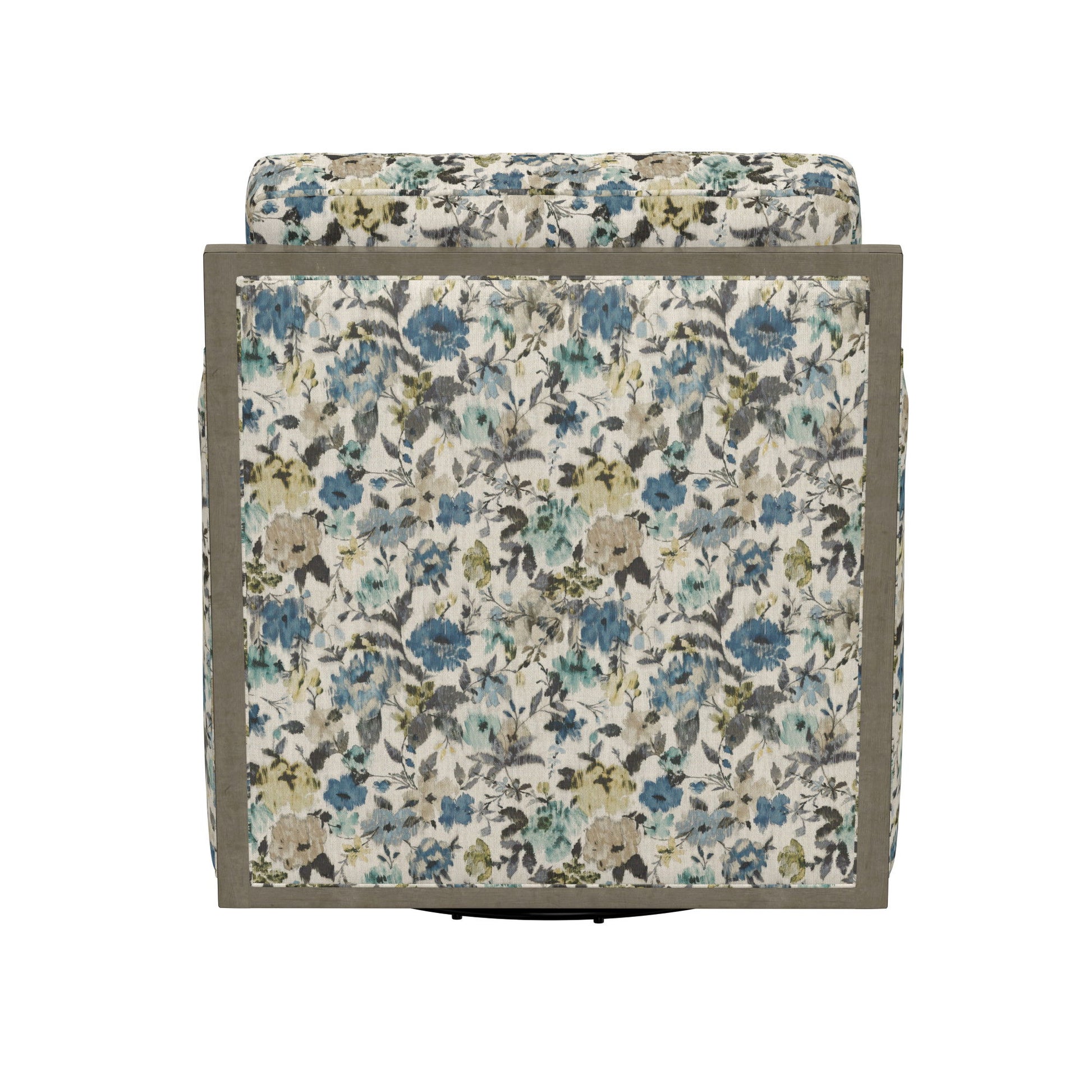 Cecily draws quiet attention with its balanced blend of structural and tailored shapes. Starting with a solid wood floating base, soft, cream-colored fabric covers the uncluttered lines and clean silhouette of the sofa, loveseat, and chair. Swivel chairs in floral and windowpane patterns are trimmed on all edges with shapely wood for stylish accessories. Completing the ensemble is a coordinating ottoman with hidden storage and castors to glide with ease. The Cecily collection will be the belle of your room with its transitional appeal.