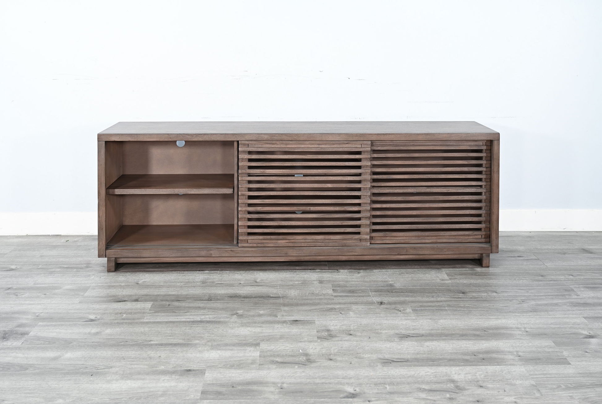 Elevate your living space with our exquisitely designed wood TV console featuring slatted doors. Crafted with premium quality wood, this console exudes a perfect blend of modern elegance and rustic charm. With ample storage space to organize your entertainment essentials, this console is as functional as it is stylish. Its versatile design ensures seamless integration into any home decor, while the sturdy construction promises longevity.