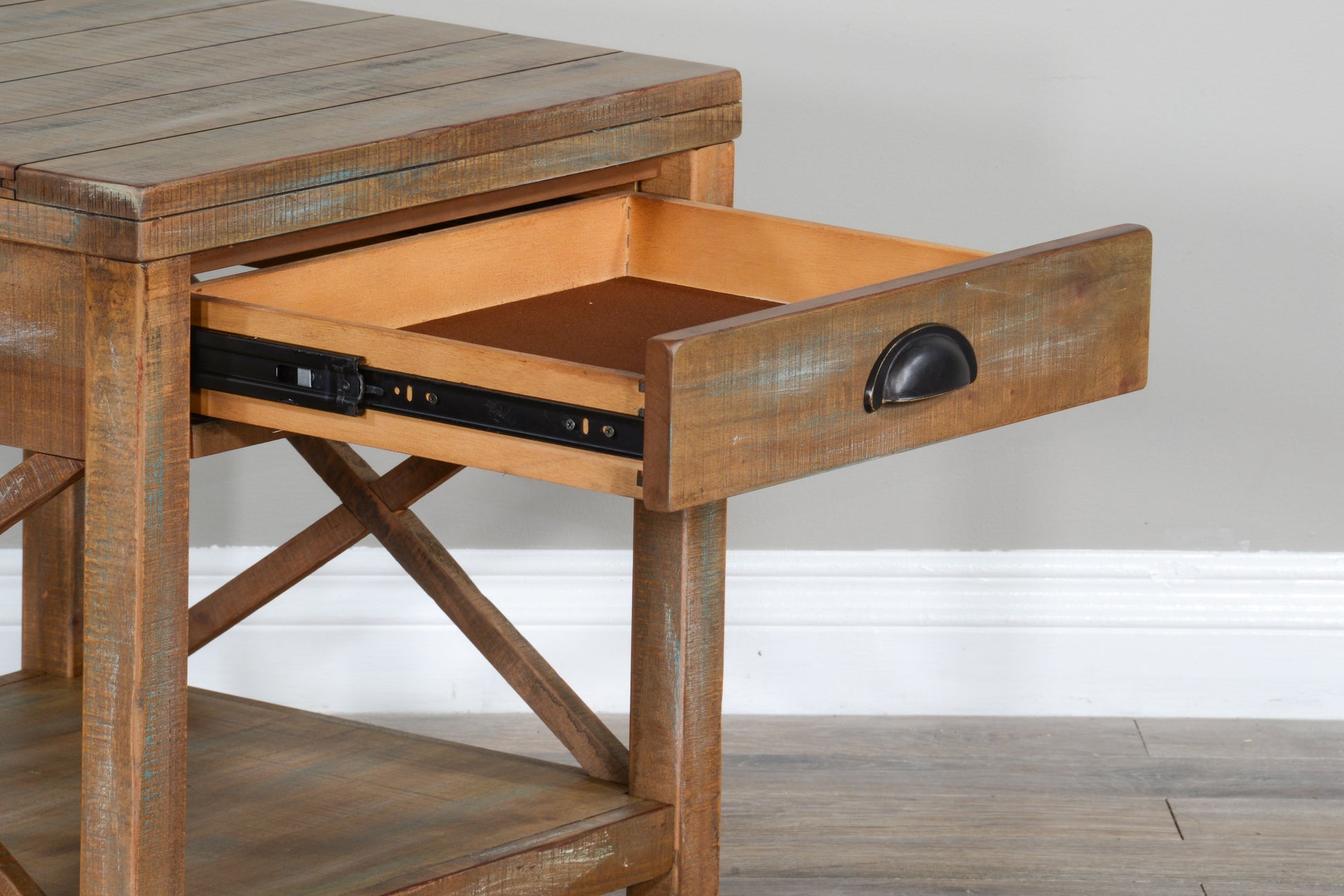Durango - Cocktail Table (No Basket) With Planked Top - Weathered Brown