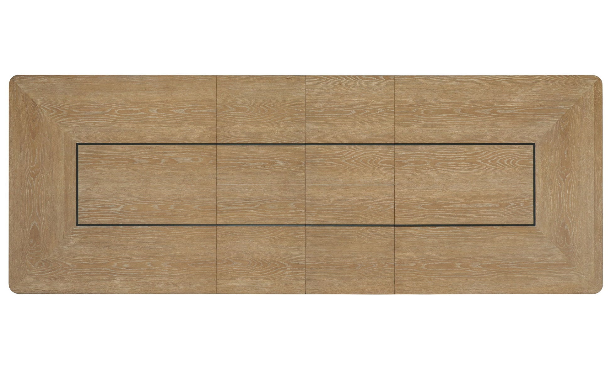 - Table's elegant metal inlay adds a distinctive accent to both the tabletop and base