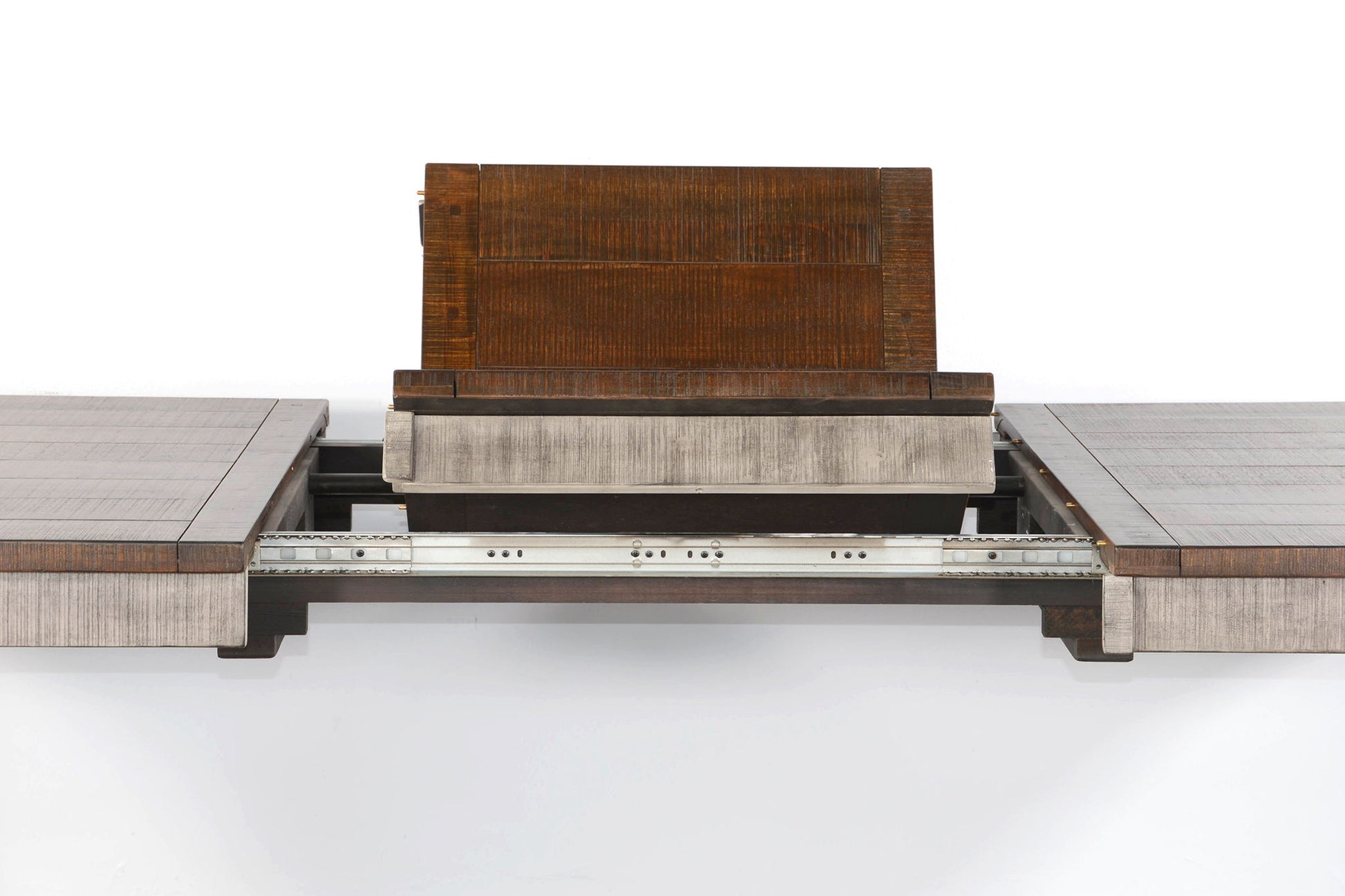 Elevate your dining experience with the exquisite craftsmanship of the Homestead Hills Collection, meticulously fashioned from mahogany solids and veneers. The collection showcases masterful rough sawn distressing, exuding a rustic charm that effortlessly captivates. The addition of the Marlborough leg introduces a tasteful level of detail, while the convenient butterfly leaf seamlessly extends the table from 66" to 90", providing versatility for various dining occasions.