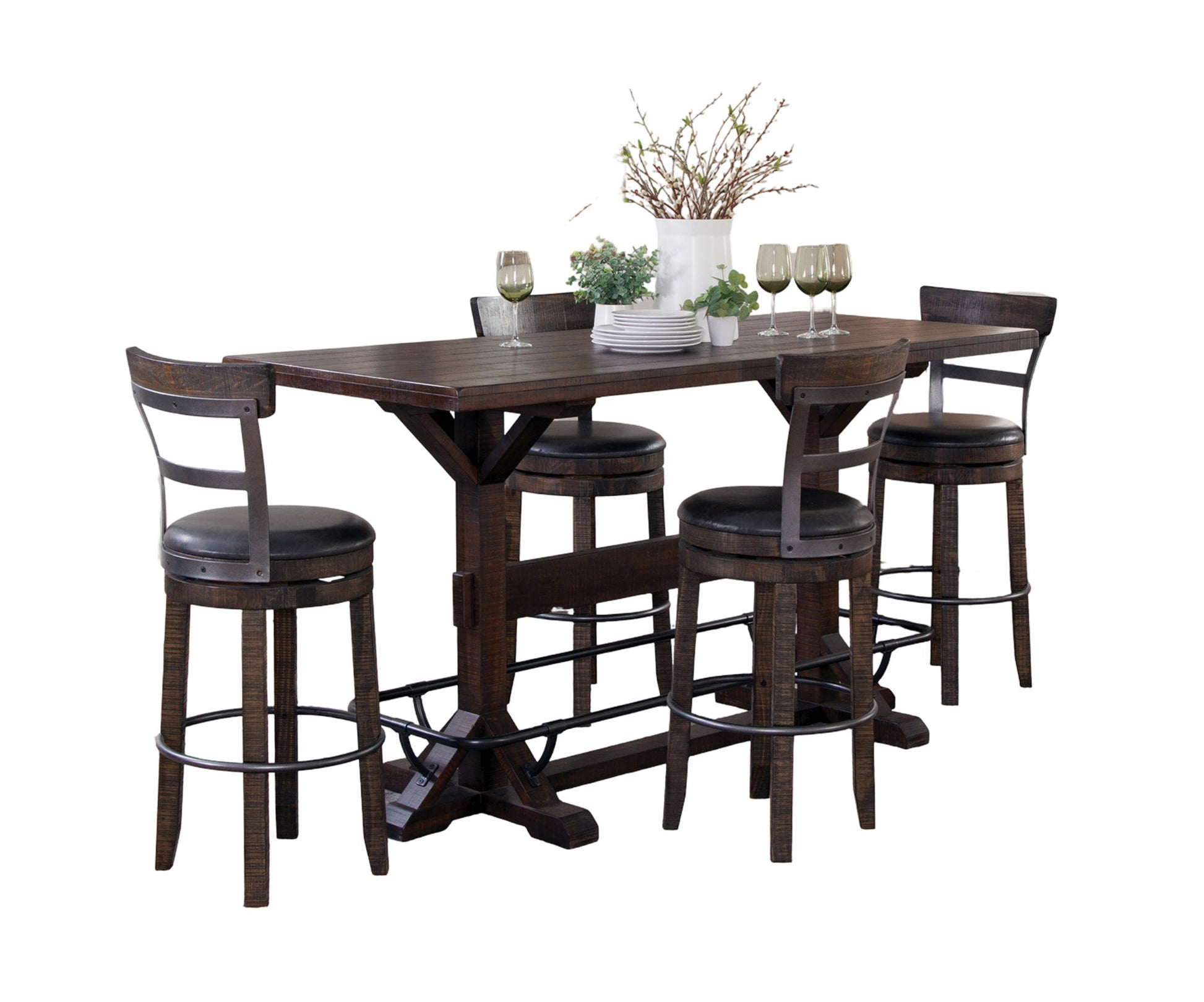 Homestead - Rectangular Full Back Barstool Pub Table Set