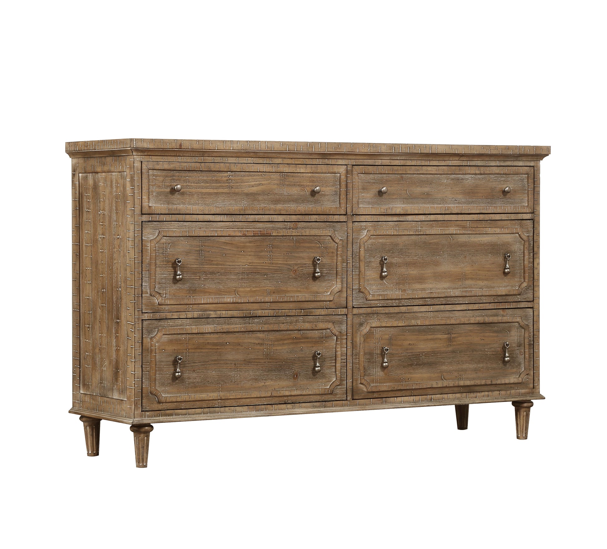 - The Interlude 6-drawer dresser combines the rustic nature of reclaimed woods with classic, sophisticated silhouettes.