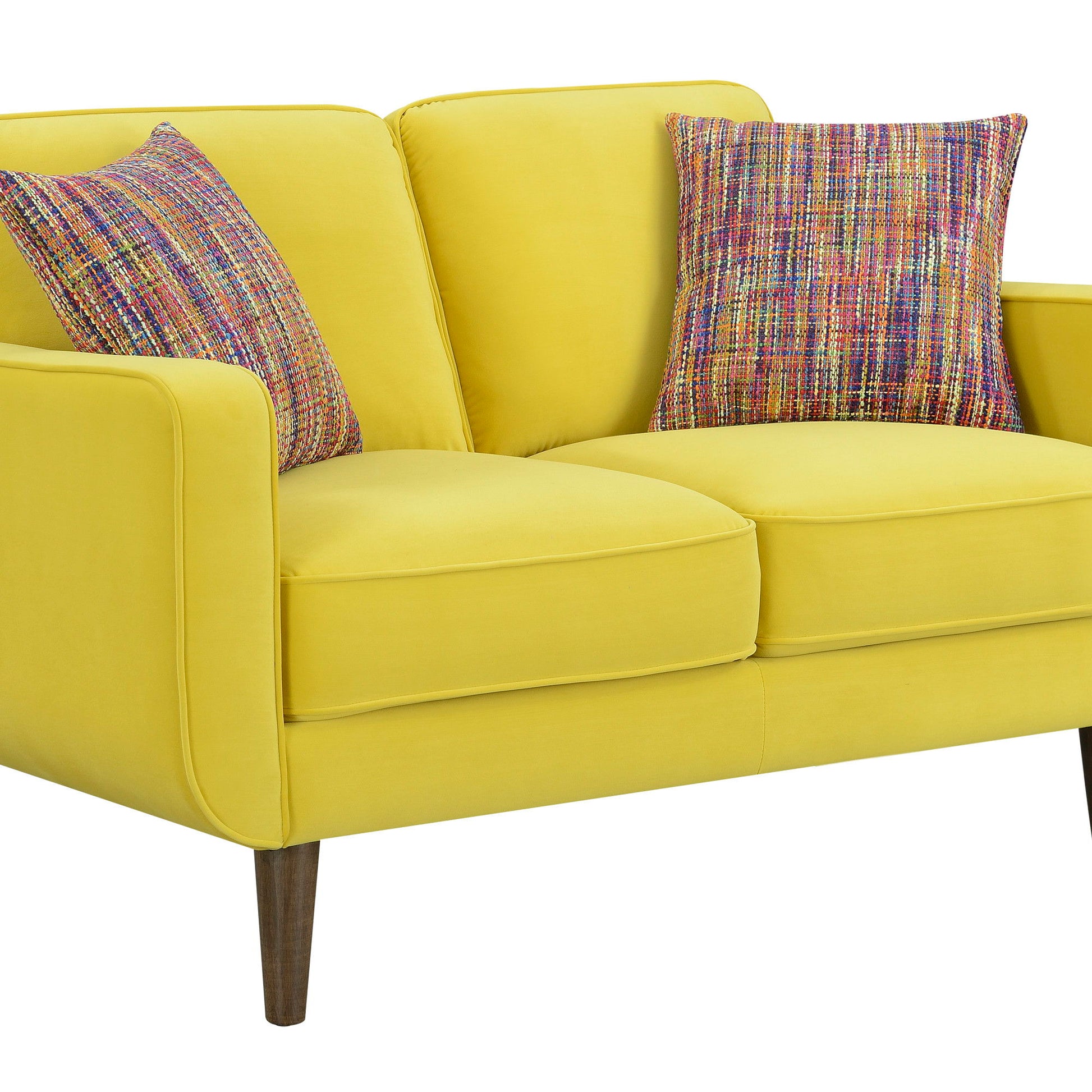 - The Jax loveseat brings a bold splash of color with mid-century modern style.