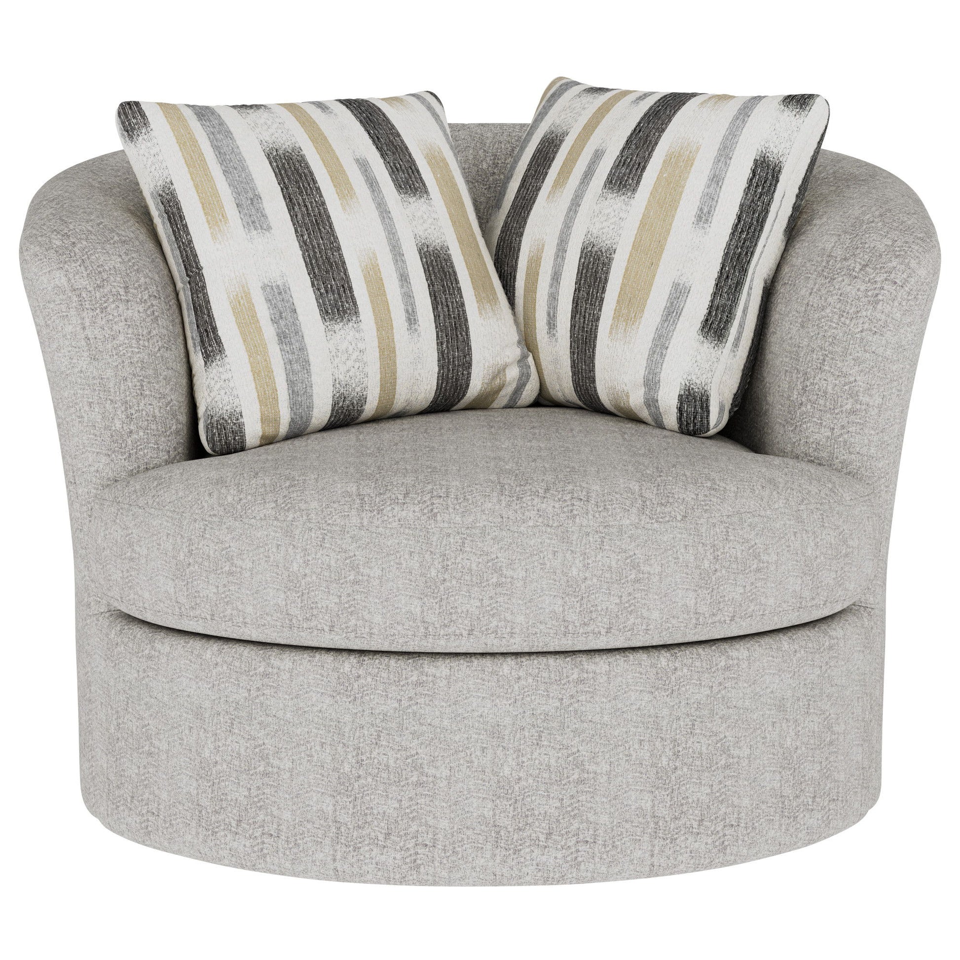 - The Myles swivel chair brings a sense of relaxed sophistication to your space. The chaise sectional, featuring contemporary tufting on both cushions and frame and sturdy solid wood legs, strikes a balance between modern design and lasting comfort. A storage cocktail ottoman keeps essentials close at hand yet out of sight. A roomy swivel chair invites you to sink in and unwind, offering a cozy spot to relax or enjoy conversation. Upholstered in light gray chenille with a faint patterned texture, this contemporary collection is designed for spaces where style meets everyday living..