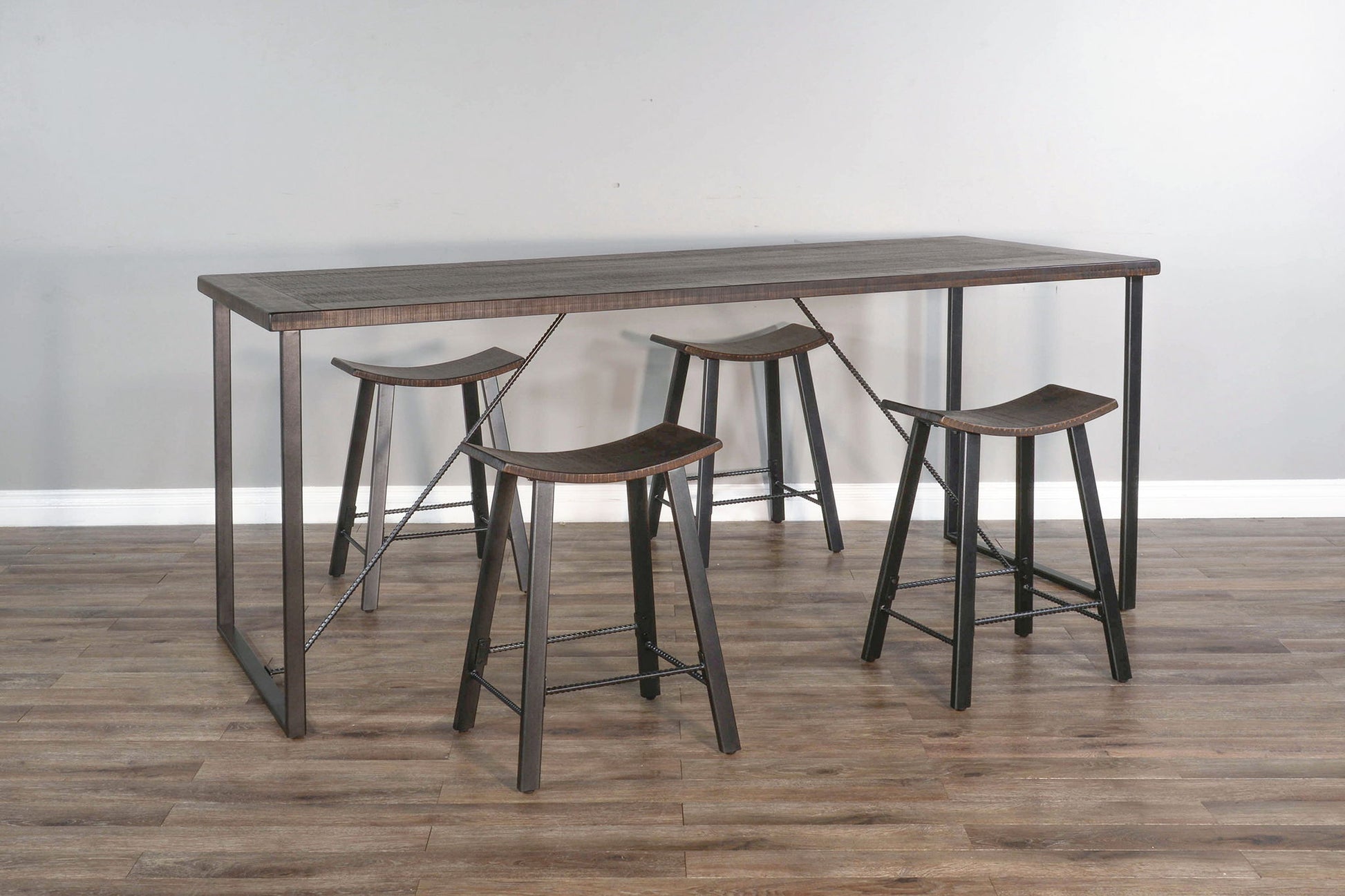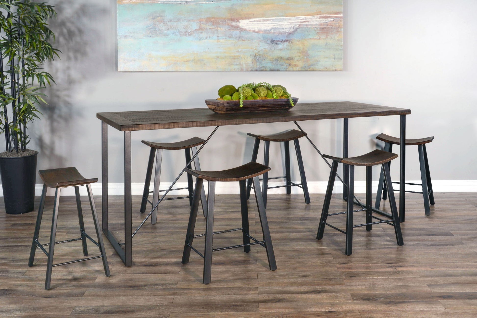 The Newport Counter Table was designed and constructed with simplicity in mind. This is a practical and minimalistic dining table made with both mahogany solids and a sturdy metal framing design that makes it easy to assemble, and visually appealing with an industrial edge. This table seats six people comfortably, making it great for casual brunches and get-togethers.