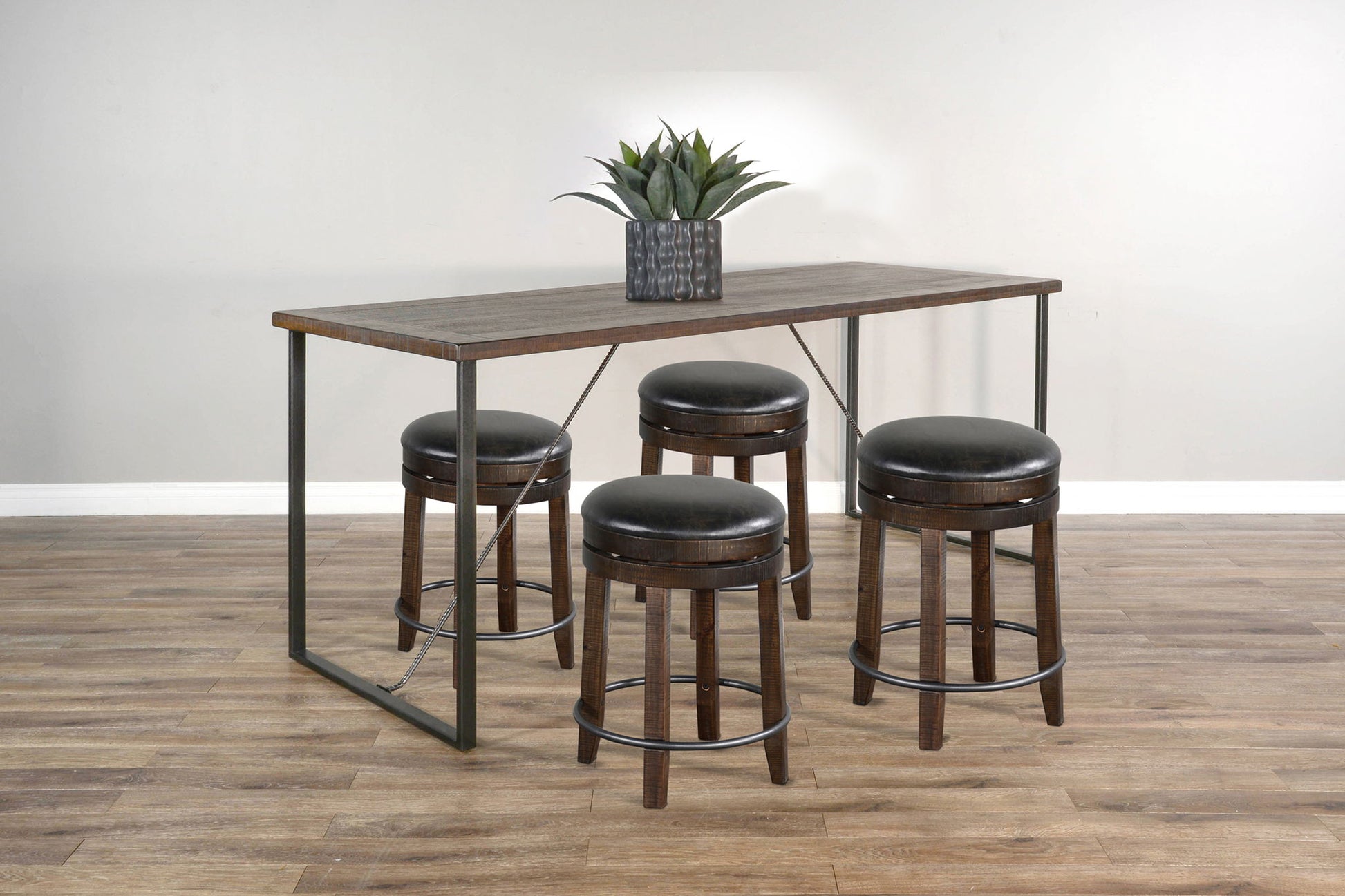 The Newport Counter Table was designed and constructed with simplicity in mind. This is a practical and minimalistic dining table made with both mahogany solids and a sturdy metal framing design that makes it easy to assemble, and visually appealing with an industrial edge. This table seats six people comfortably, making it great for casual brunches and get-togethers.