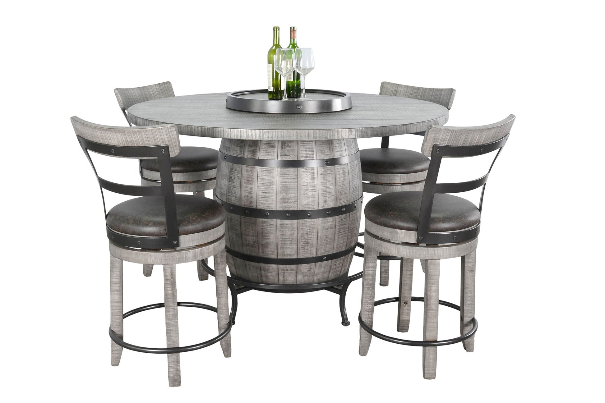 Round 5 Piece Pub Table With Side Chair Wine Barrel Set - Alpine Gray