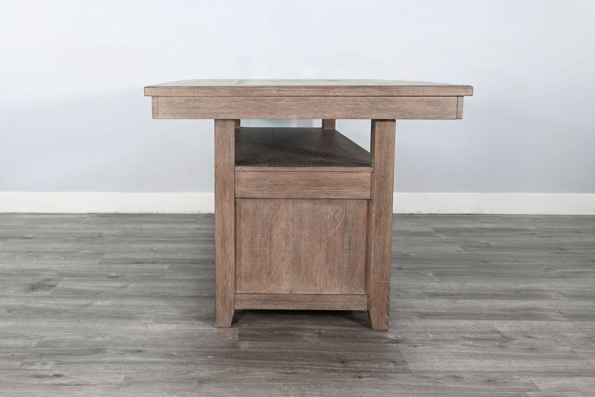 Rustic Counter-Height Extension Dining Table With Barn Door Storage - Amber