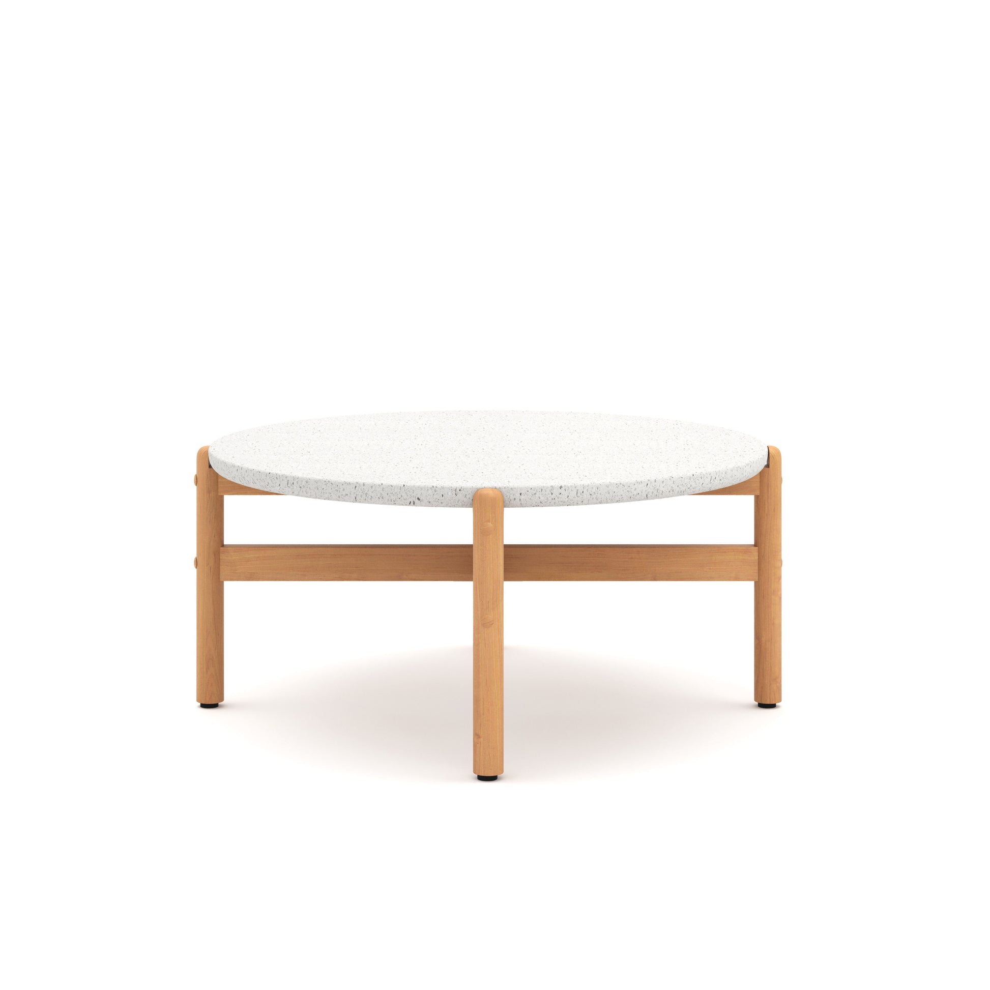 Introducing the Solstice Outdoor Coffee Table with Terrazzo Top, a stunning addition to your outdoor living space. Crafted from FSC Certified Acacia Solid Wood, this coffee table is both durable and eco-friendly, promising years of enjoyment. The light, clear finish accentuates the natural wood grain, while the weather-resistant properties of Acacia ensure protection against water damage and UV rays. Featuring a marble-like terrazzo top, this table not only adds beauty but also offers resistance to water, mildew, and mold, making it perfect for year-round use. Elevate your outdoor gatherings with the timeless elegance and functionality of the Solstice Outdoor Coffee Table.