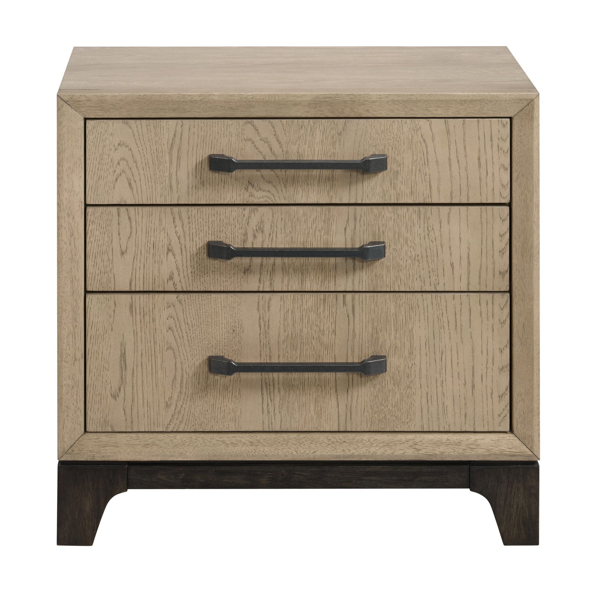 The Sutton Place bedroom collection embodies relaxed contemporary style with a focus on the natural beauty of oak. . Crafted with tight-grain, matched oak veneers over hardwood solids, each piece features a warm two-tone finish of caramel atop a cocoa base. Dark bronze bar pulls add subtle contrast, while select pieces showcase asymmetrical drawer configurations for unique visual appeal. The collection is anchored by a framed panel headboard paired with a panel or storage footboard, bringing a sophisticated yet comfortable look to your bedroom space.