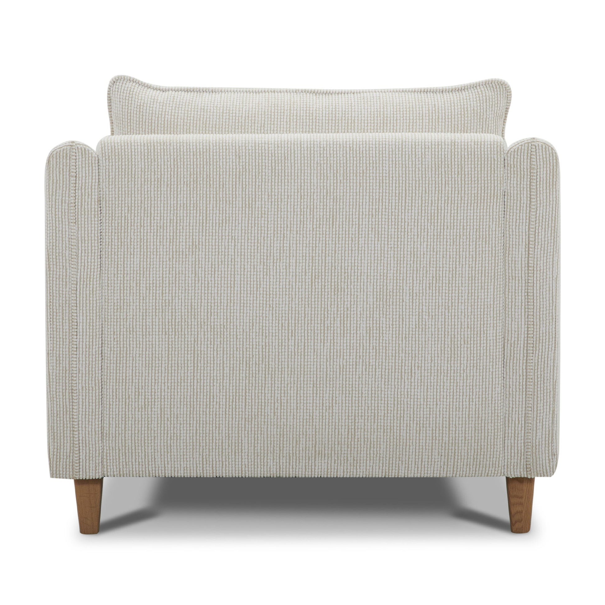Whether you're curling up with a book or entertaining guests, our Chair and a Half provides the perfect combination of comfort and style. The wood feet in a natural finish add a distinctive touch and lend a modern vibe to the design. Exquisitely tailored and upholstered in a durable, 100-percent polyester fabric with rich texture and velvety softness, this chair provides a cozy and luxurious seating experience. The seat cushions are padded with high-density Dacron and topped with sterilized down and feathers for maximum plushness, while the seating features no-sag springs and high-density webbing for long-lasting support. The wood frames feature reinforced corner blocks for lasting strength and stability, and select woods are kiln-dried to minimize warping and splitting while ensuring longevity. The seat cushions are encased in cotton, down-proof channeled ticking to help them keep their shape and prevent feather migration.