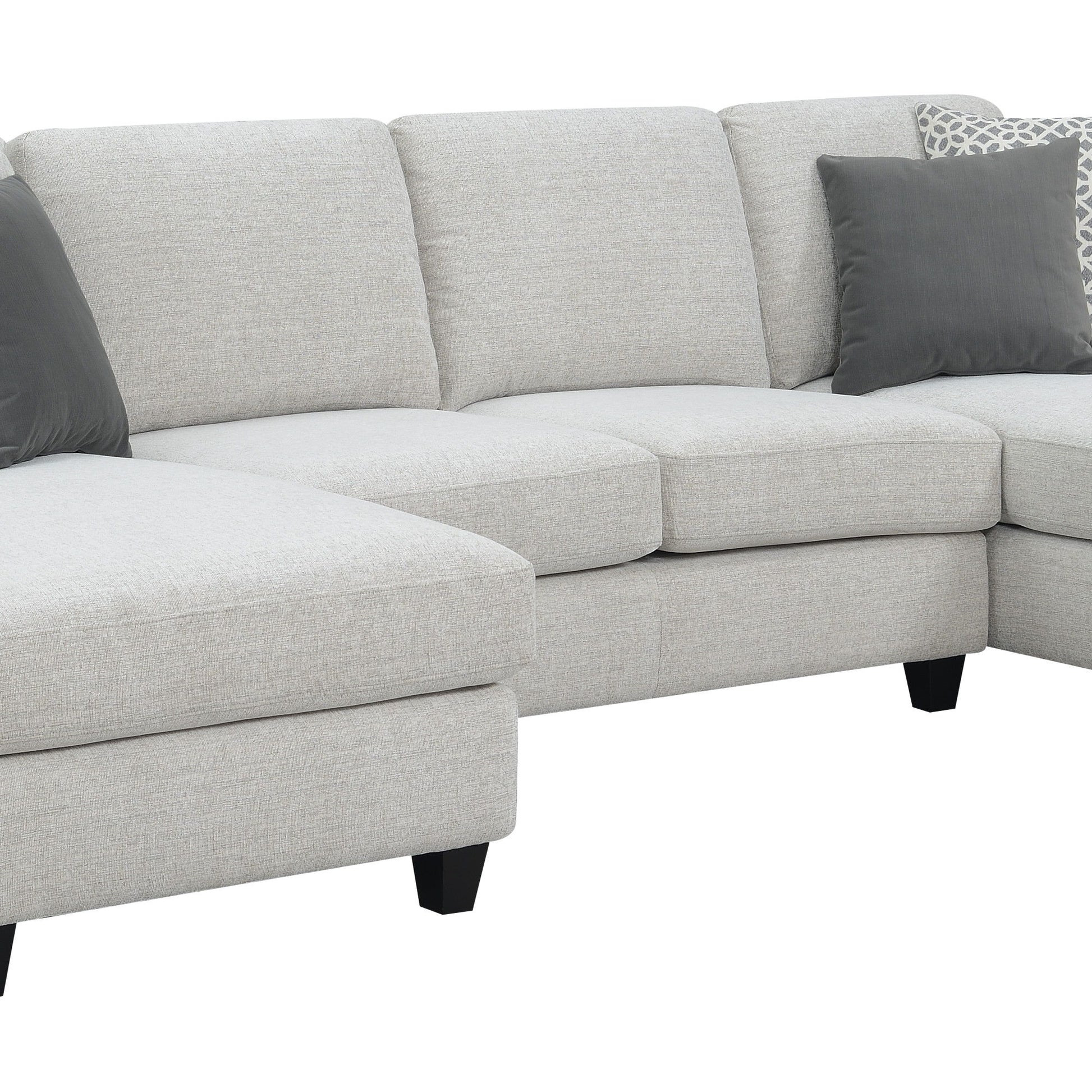 Composed in a clean, contemporary style the Walker collection is a u-shaped sectional with a smaller footprint. This collection’s pale gray fabric with dark gray lowlights provide a look of ease while adding exceptional comfort. Tailored with sophistication, the Walker collection is sure to compliment your space beautifully.