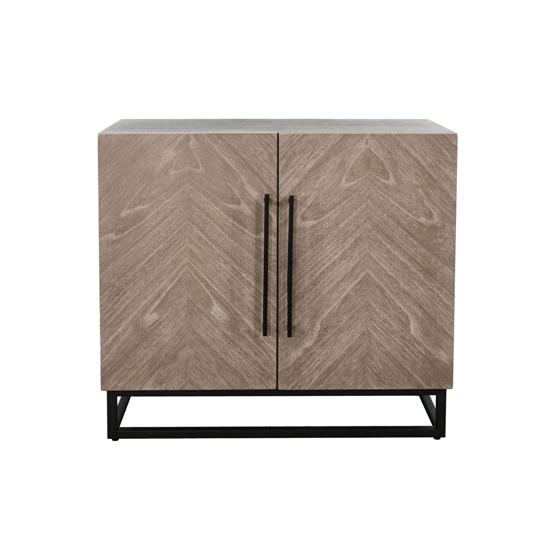 Wood Accent Cabinet With Chevron Doors And Metal Base - Wheat